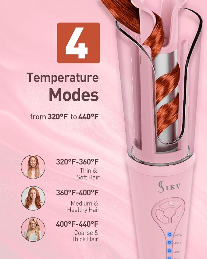 - 320℉-440℉ Temperatures for All Hair Types:Fast heating in 30 seconds. It has 4 temperature settings to suit different hairs for a range of temperature needs. 320℉-360℉ for thin/soft hair, 400℉for medium/healthy hair, 440℉ for thick/coarse hair. You can use it to curl any part of your hair and make different hairstyles.