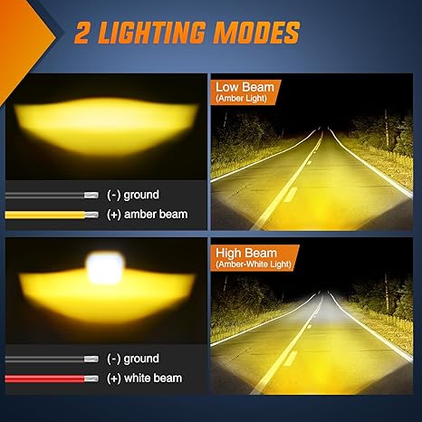 - Dual Use: Combination of driving light and fog light. White driving light improves your visibility at night while amber fog light helps you see clearer on a foggy or rainy day