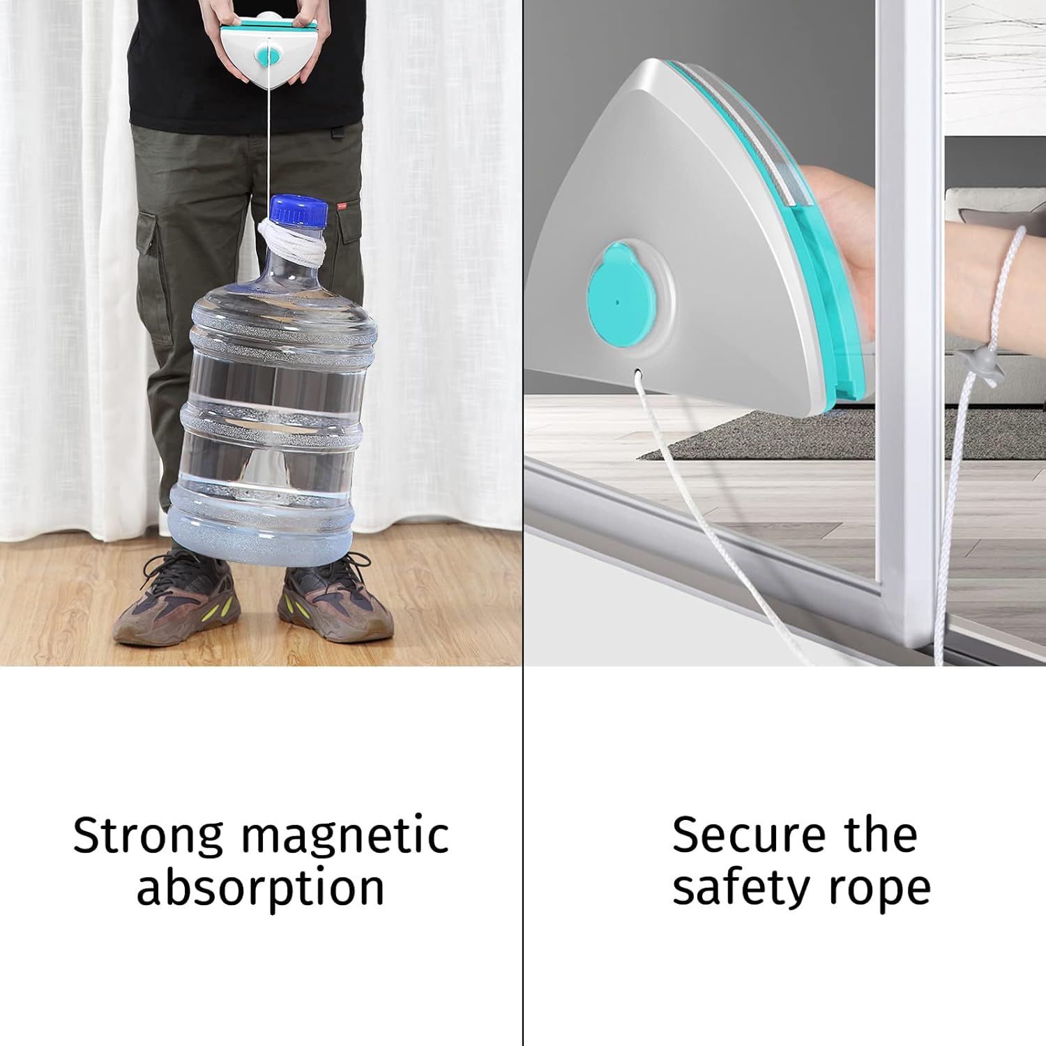 - 4. [Stronger safety rope]: Our glass window cleaner is equipped with a 2.5-meter anti-fall rope. Before cleaning the window, put the safety rope on your wrist to prevent it from falling. You can stand in the room to clean the exterior windows and wipe the glass more firmly.