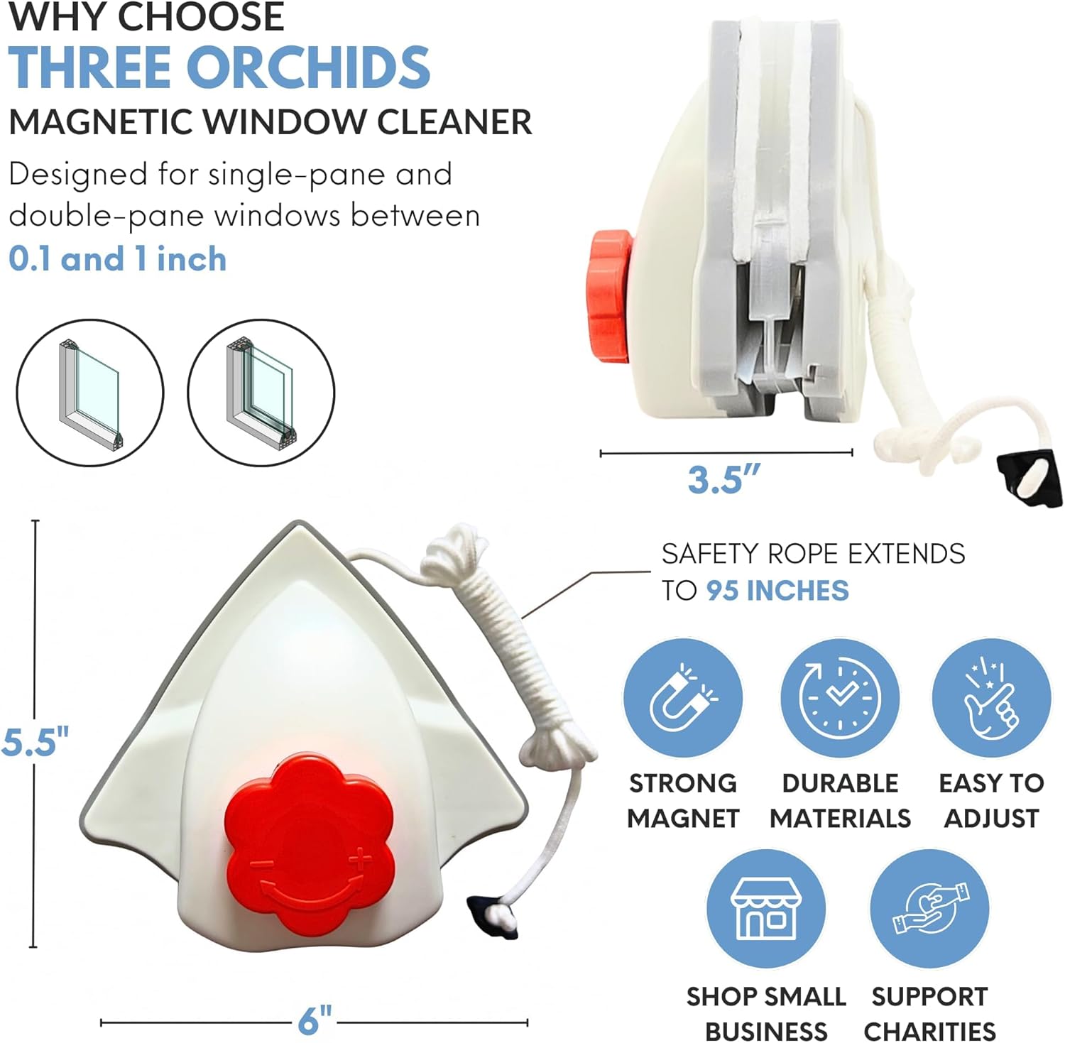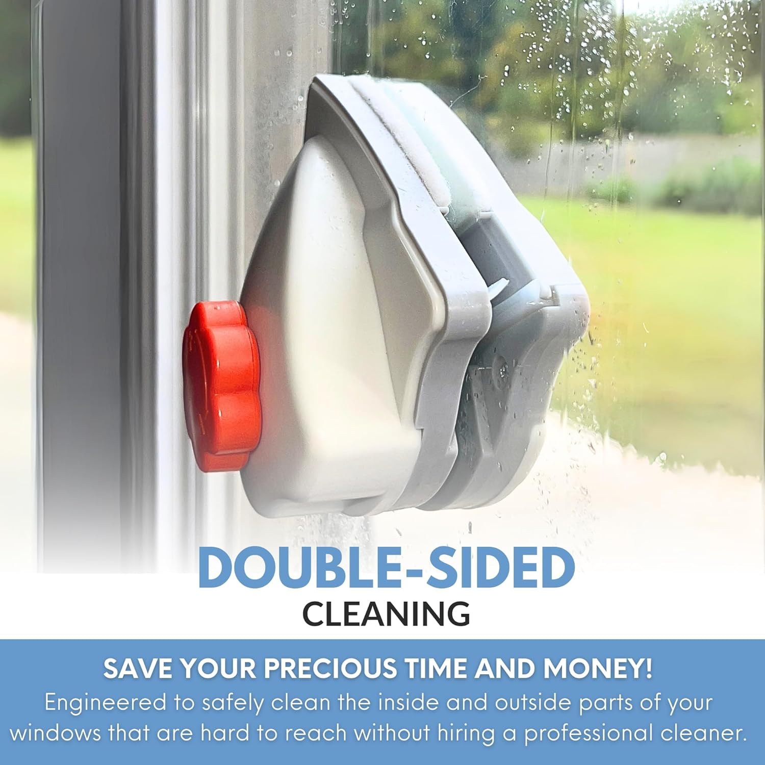 - DOUBLE SIDED WINDOW CLEANER: Enjoy your cleaning experience with the magnetic double sided window cleaner that measures 6” x 5.5” x 3.5” and cleans both sides of the window at the same time. The cleaning pads and squeegees on both sides of the magnetic window washer ensure a thorough cleaning of your windows.